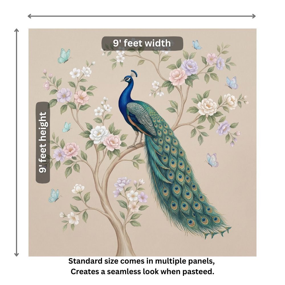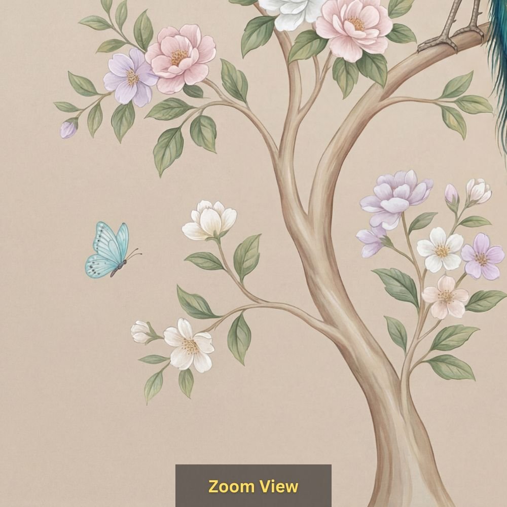 | Pattern Name : | Elegant Peacock Wall Mural with Pastel Blossoms & Butterflies |