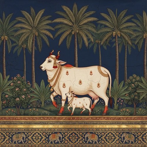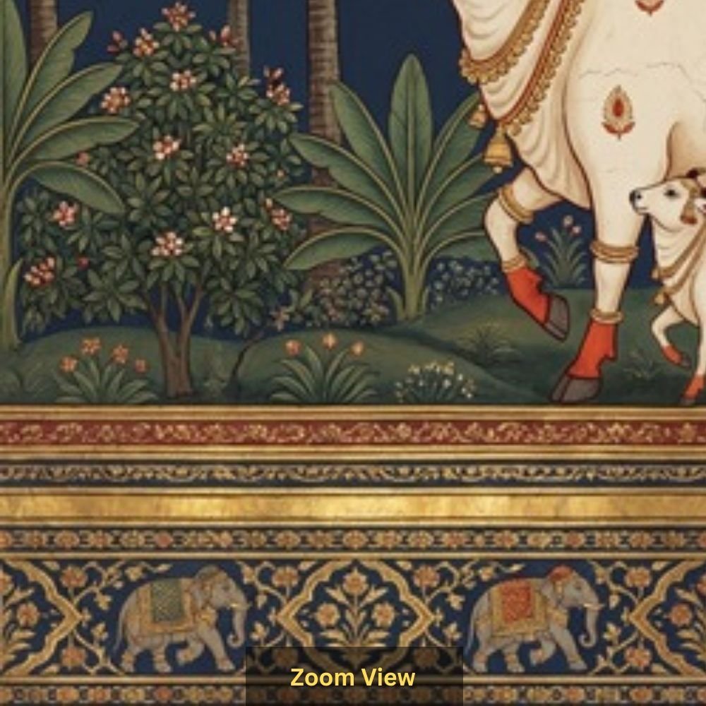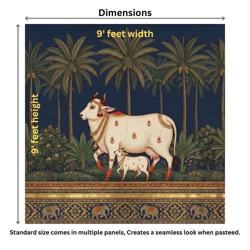 | Pattern Name : | PICHWAI-Indian Heritage Cow & Calf Miniature Art Wallpaper Mural – Rajasthani Mughal Style-1 |
